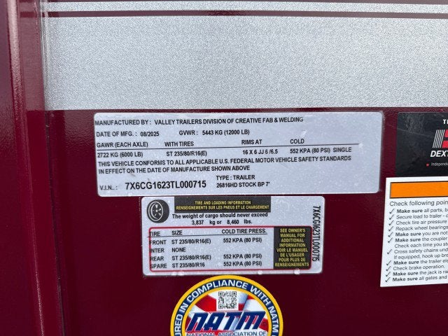 2026 Valley 16' BUMPERPULL Trailer