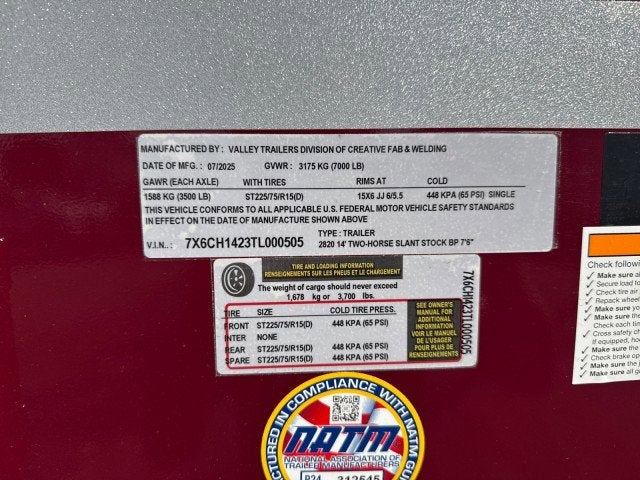 2026 Valley STOCK SLANT Bumperpull